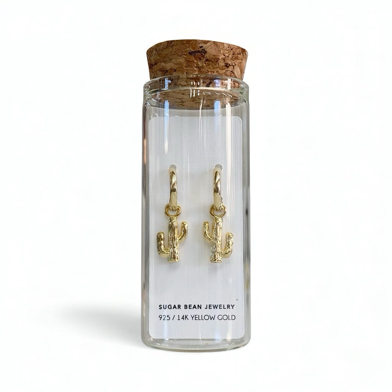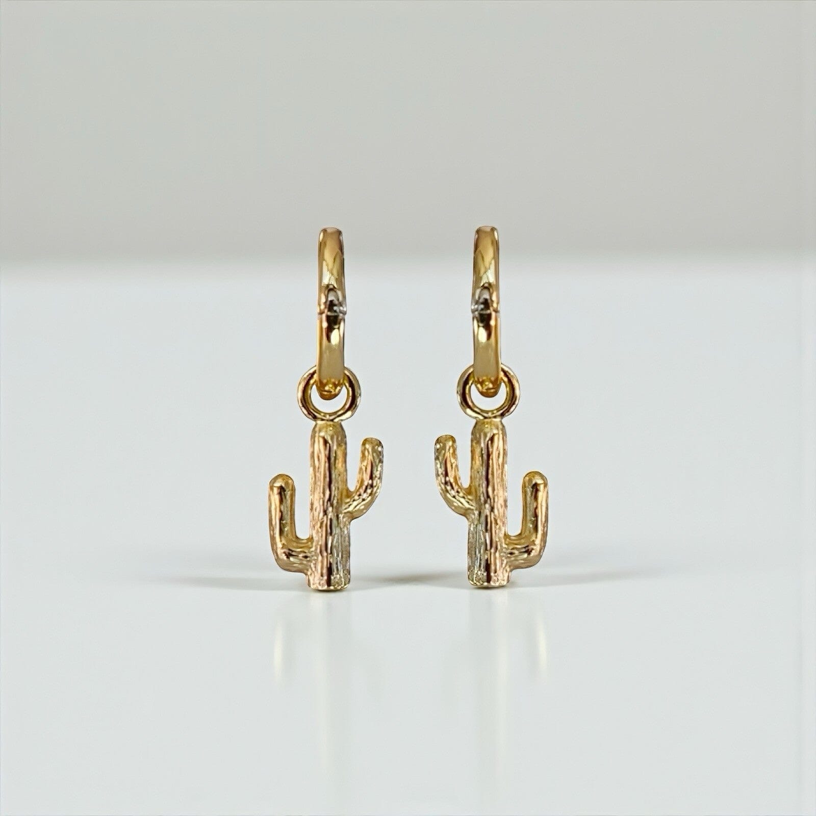 A modern nod to the desert — perfect with airy dresses, denim, or your favorite everyday basics. Wear the huggies solo for a clean shimmer or add the cactus charms for a bold, Southwestern touch.