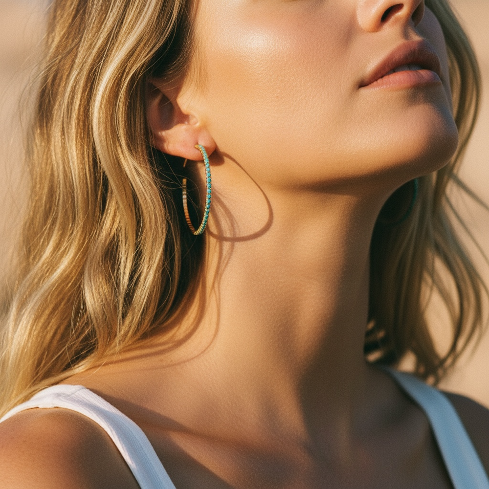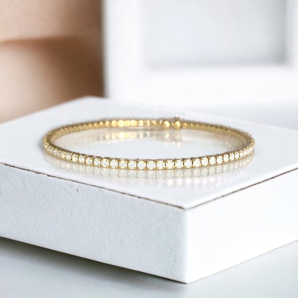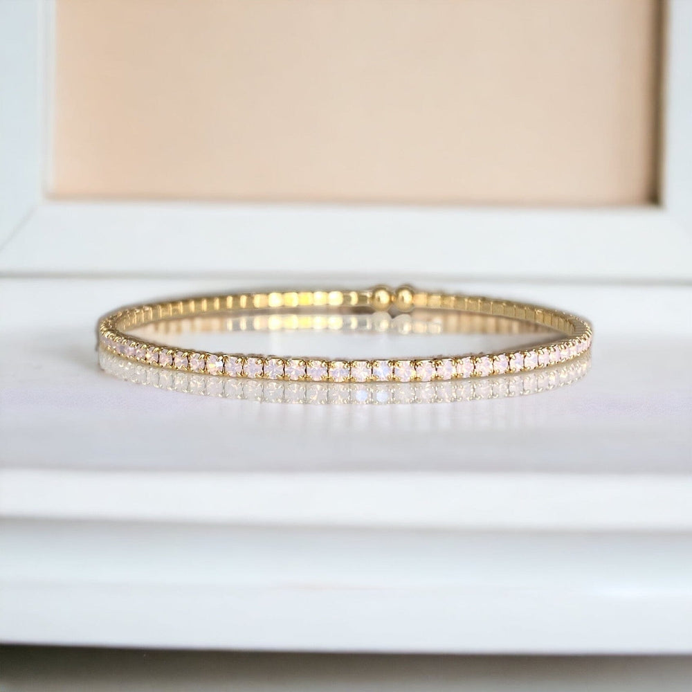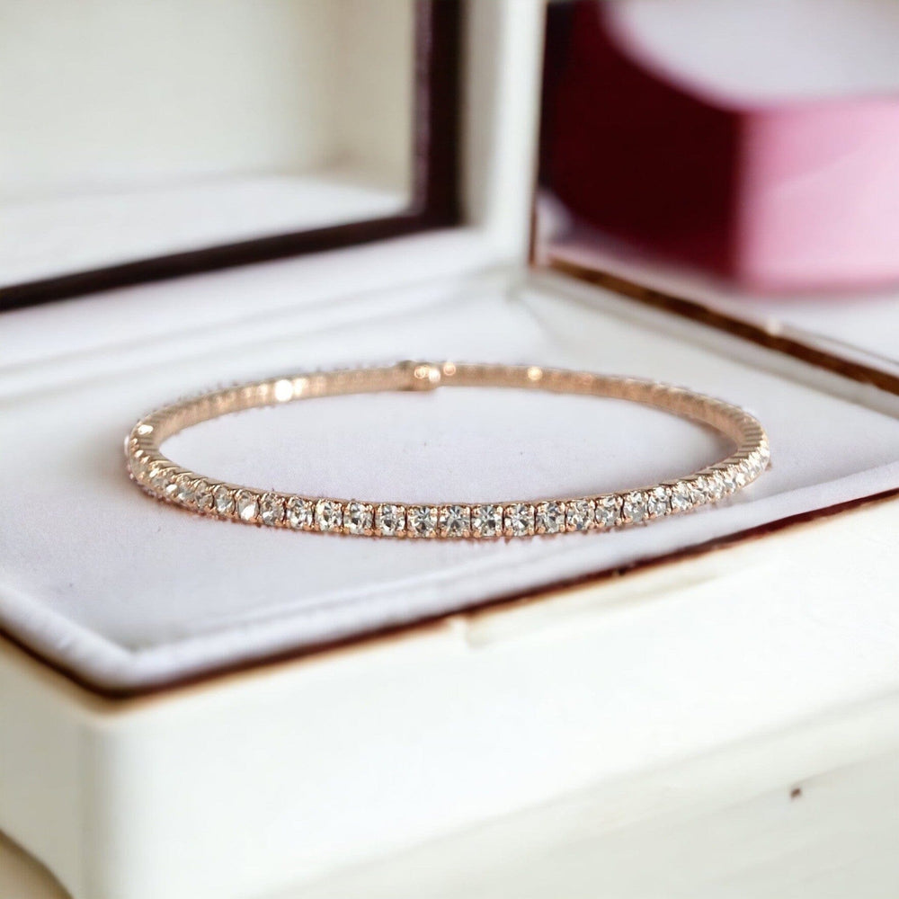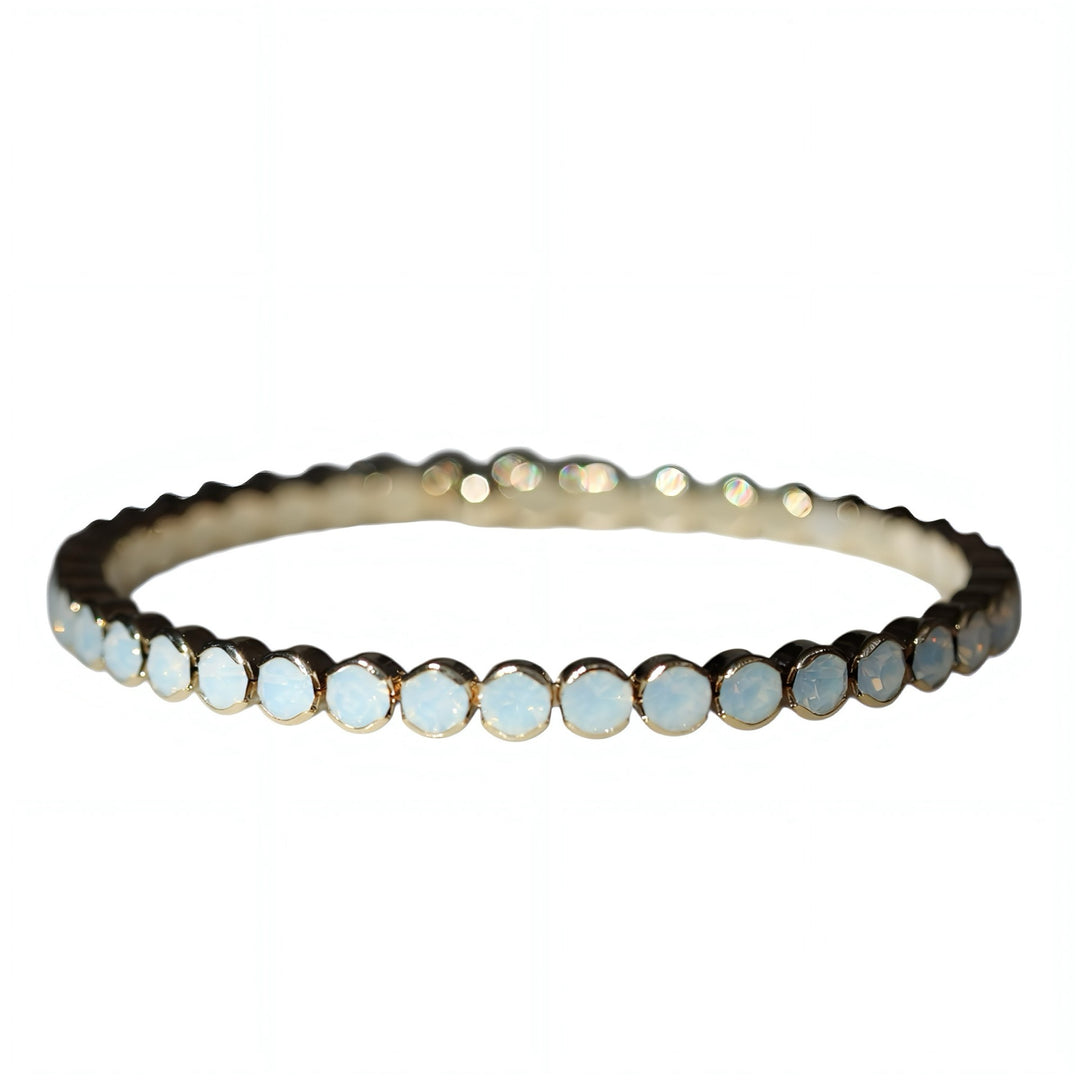 Pure light, held in place. These hand-selected crystal bangles capture and refract the day's changing glow — a quiet luxury meant to be stacked, layered, and lived in. Timeless in their simplicity, endlessly personal in how you wear them.