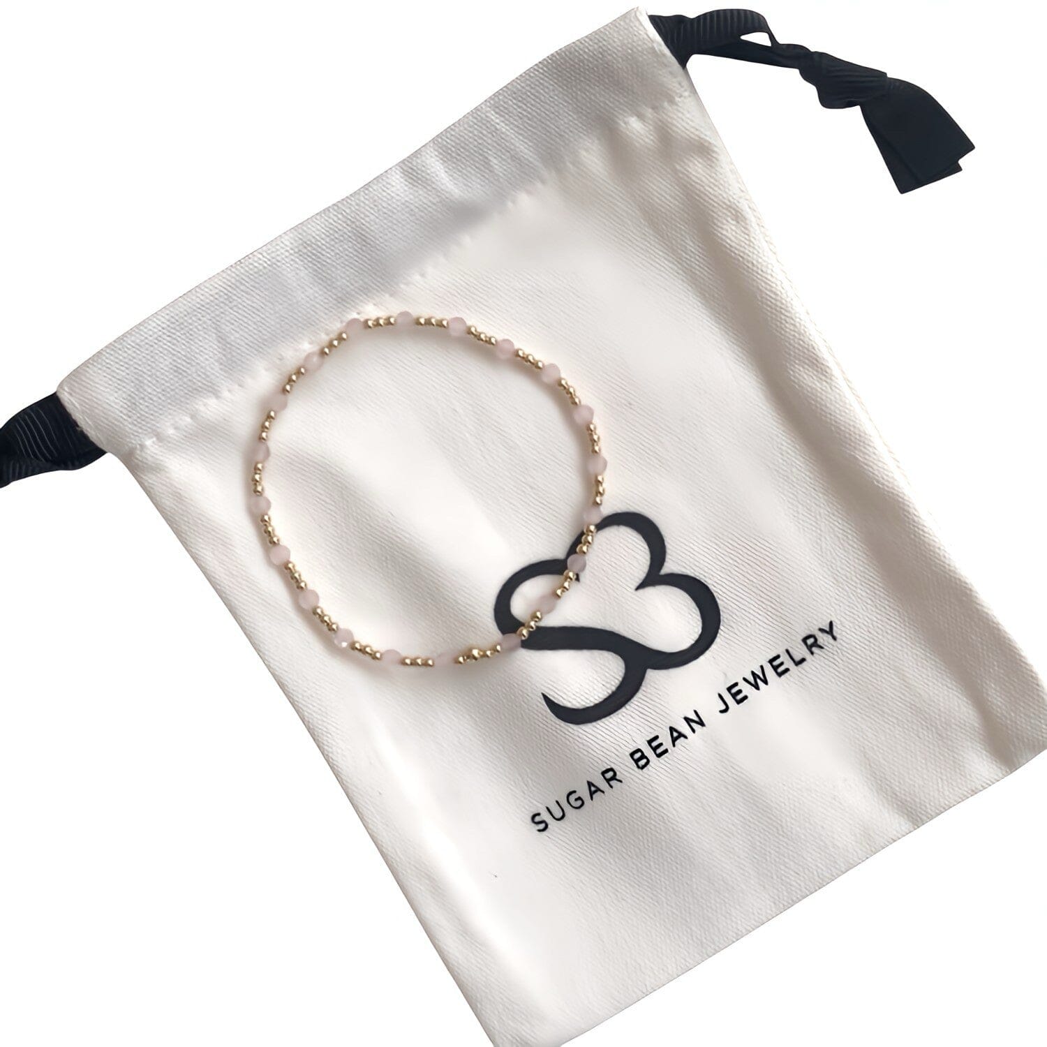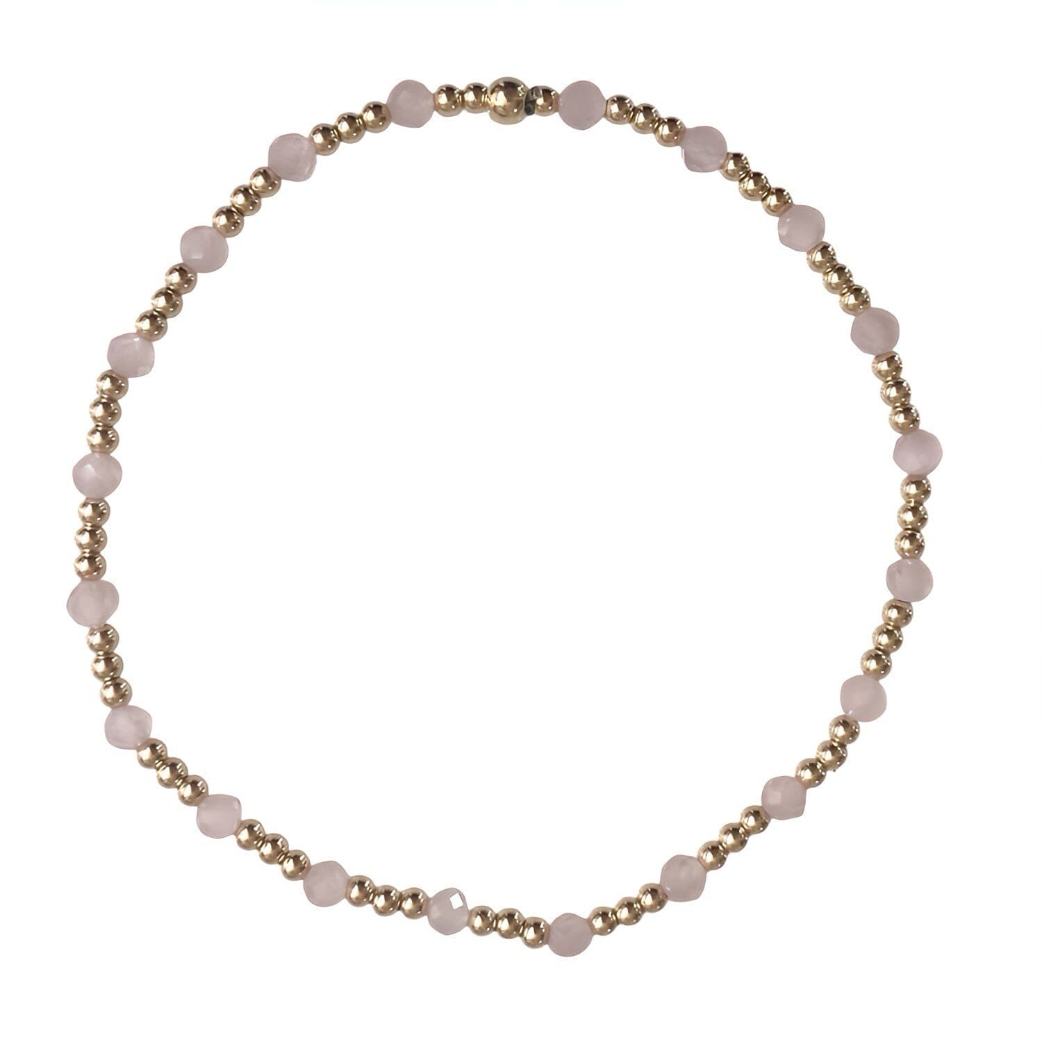 Our Sincerity Bracelet is a graceful blend of beauty and meaning. Hand-beaded with petite faceted rose quartz gemstones and 2.5mm 18k gold-filled beads, this bracelet is designed on high-performance elastic for an effortless roll-on fit. Its balanced pattern creates a refined, elegant look that transitions seamlessly from everyday wear to special occasions.