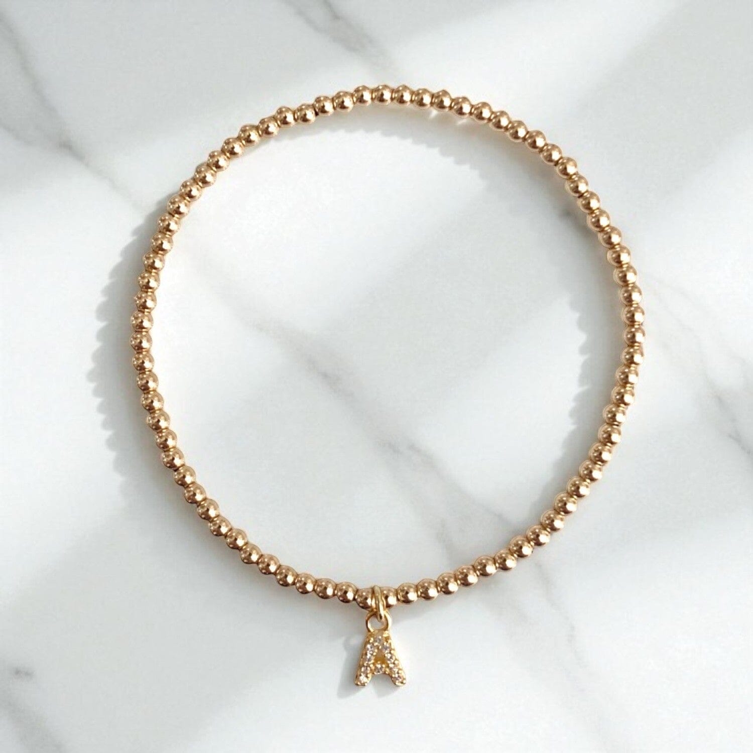 Personalize your wrist stack with meaning. Our Mini Letter Charm Bracelets are crafted in sterling silver with a rich 14k yellow gold plate and handset CZ charm for subtle sparkle. They add a thoughtful, personal touch to any of your gold-fill beaded bracelet stacks.
