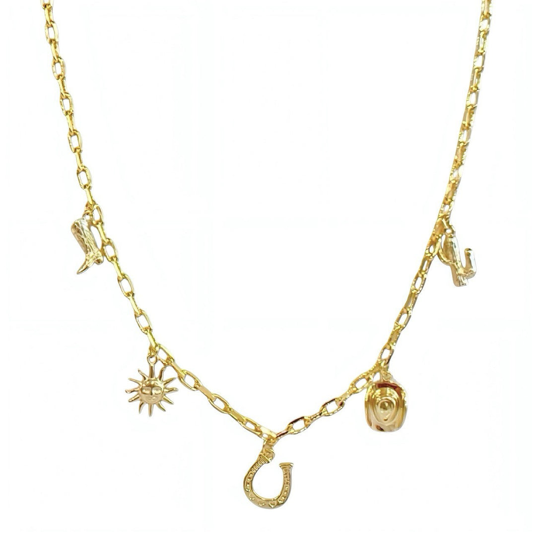 Heritage icons, refined. Horseshoes, boots, hats, suns — the symbols of the American West, reimagined in sterling silver and gold-plated brass. Each piece carries a quiet nod to wide-open skies and timeless grit. Layer them for a collected look, or let one speak on its own.