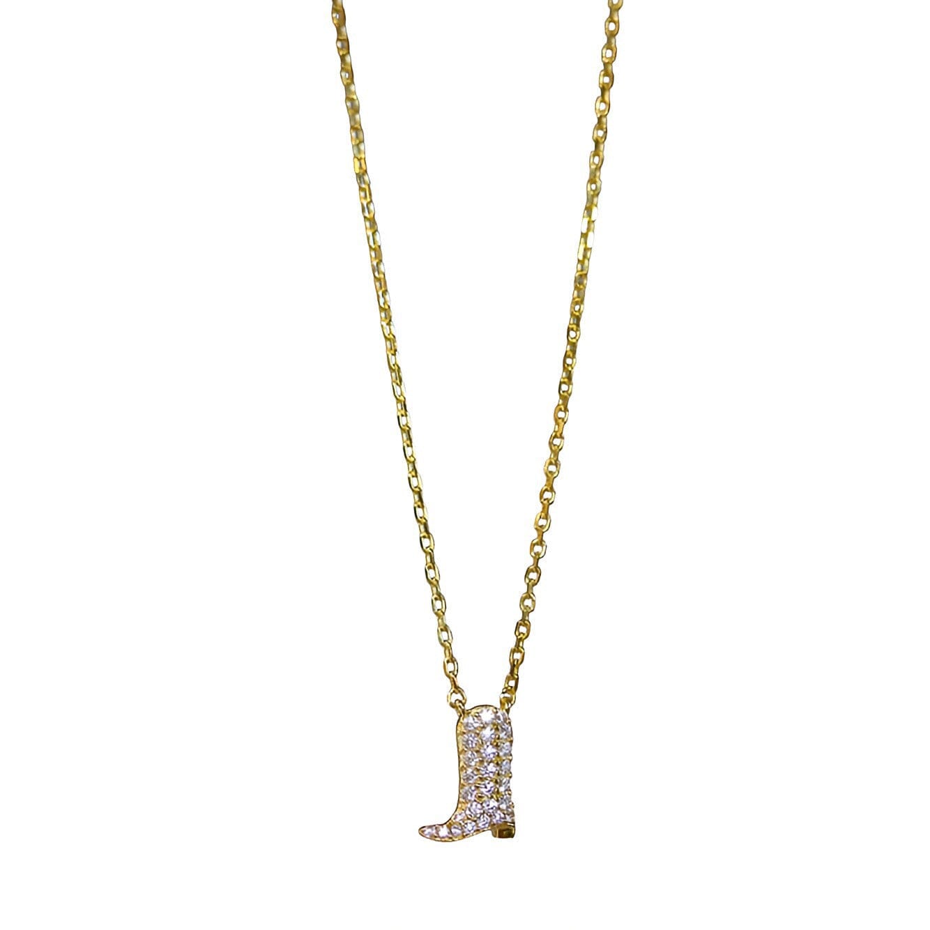 Our Boot Necklace captures western spirit with timeless elegance. Hand-set with over two dozen sparkling lab diamonds, this dainty pendant brings refined cowgirl charm to every neckline.