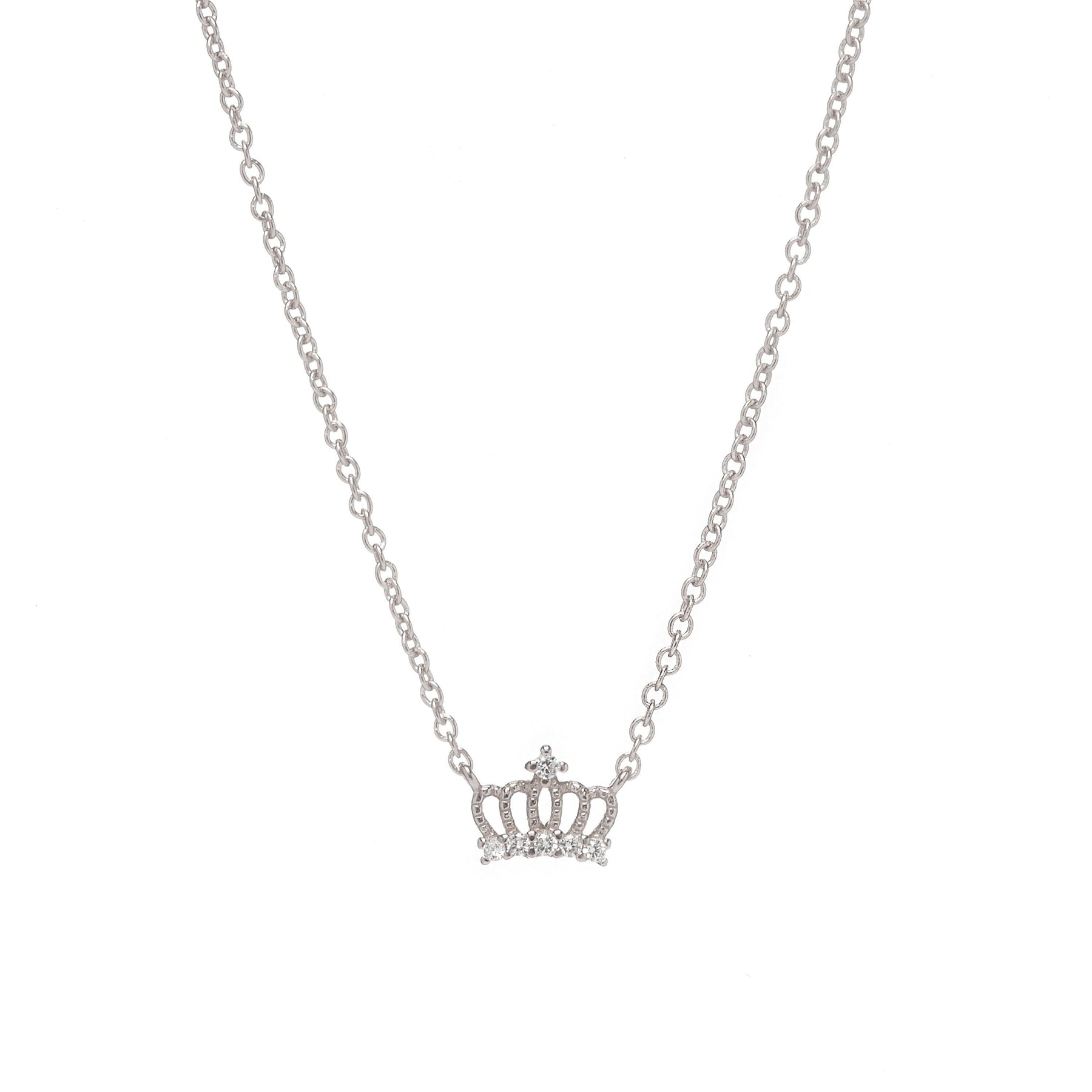 A dainty crown pendant necklace with hand-set lab diamonds. Crafted in sterling silver with 14k gold or rhodium finish — perfect for layering or gifting.
